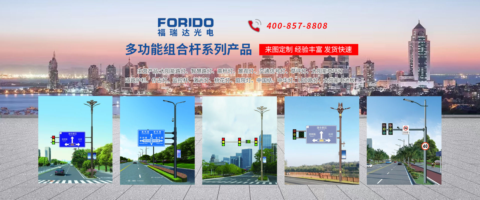 揚州福瑞達光電科技有限公司位于淮左名都歷史文化名城、中國路燈制造基地揚州市北郊菱塘工業園,公司占地面積76000平方米,注冊資金10518萬元,擁有高級技術嫻熟的員工280多人,擁有大型折彎機、激光切割、數控注塑機、壓鑄機、自動埋弧焊、氣焊、彩色粉末靜電噴塑等大型自動化設備,我公司是一家集設計、研發、生產、銷售、施工安裝服務為一體的戶外交通照明產品制造商,主要生產智慧路燈、太陽能路燈、LED路燈、高桿燈、景觀燈、交通信號燈、交通標志牌、通信鐵塔、路跨鋼結構、公交站臺、太陽能光伏組件、景點亮化、樓宇亮化工程的設計施工等。公司秉承開拓創新、銳意進取、精誠服務的企業精神,堅持以“誠信為本、技術為先、服務是金”的合作理念,我們憑借先進的制造工藝、優質的產品質量、合理的市場價格和完善的售后服務贏得了廣闊的市場和客戶的信賴。 我公司已通過ISO9001質量體系認證、ISO14001環境管理體認證,CQC產品認證,中國節能產品認證,通過“CCC”強制性產品認證,具有市政總承包,照明,交安,設計等資質···